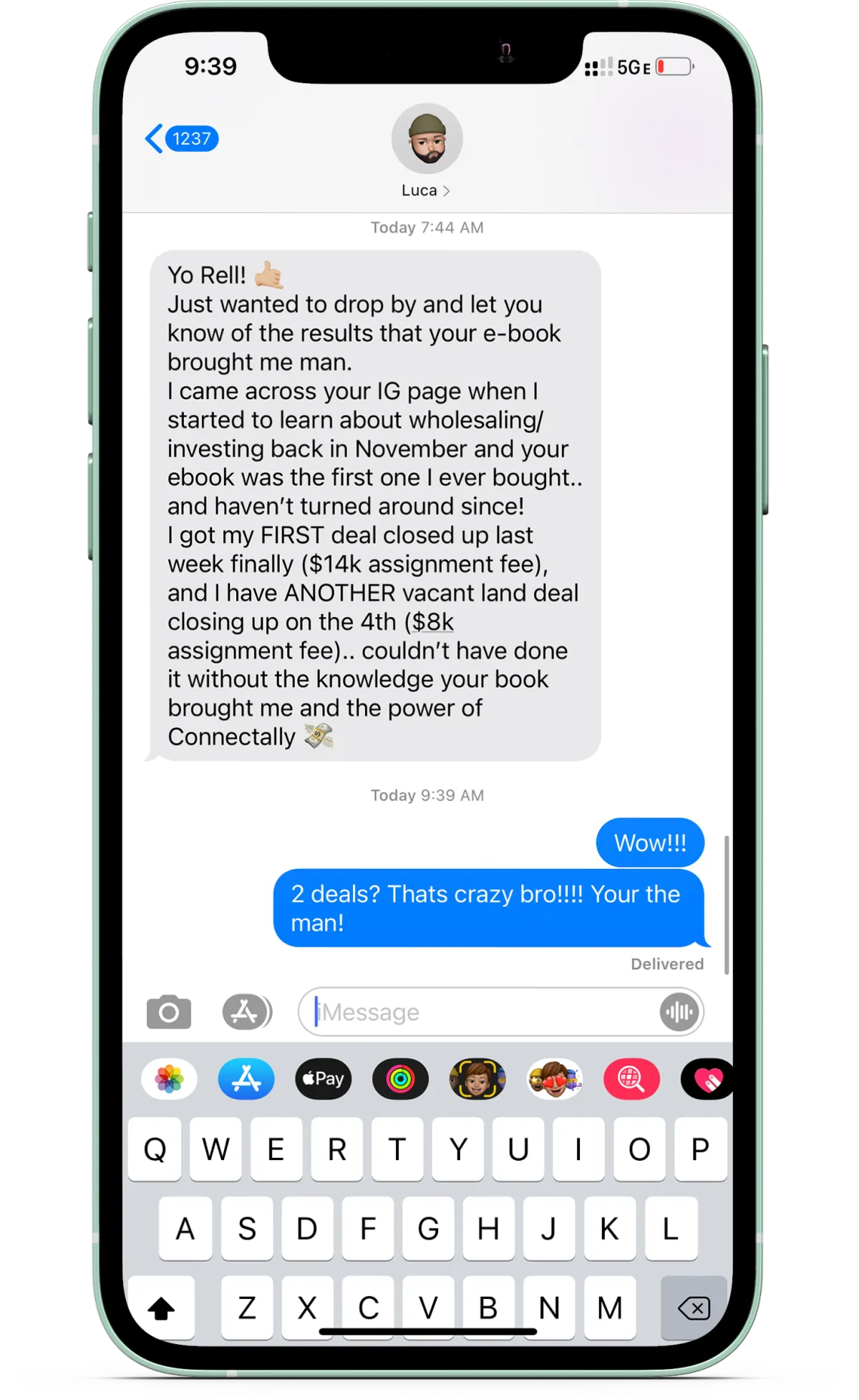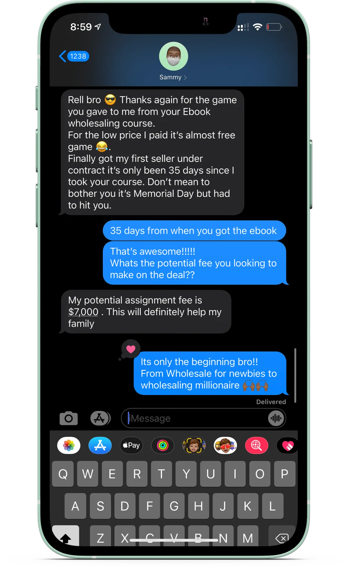 Wholesale Real Estate is middle manning a real estate transaction where a wholesaler contracts a distressed property and sells the contract to another investor for a fee through assigning the rights to another investor. I wrote this Ebook to give you the jumpstart needed to get deals done without ever needing to own the property!!